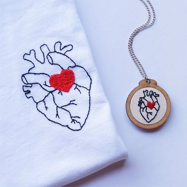 ![Вышивка на белой футболке]()
