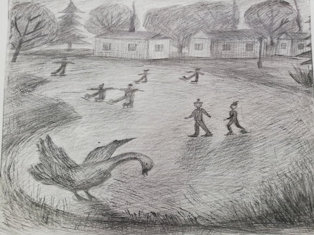 ![Гусь на льду рисунок]()