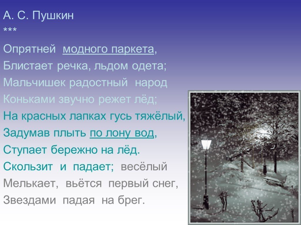 ![Стихотворение Пушкина опрятней модного паркета]()