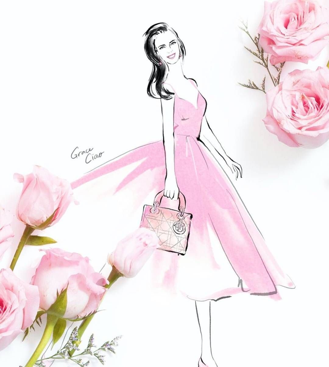![Фэшн иллюстрации цветов]()