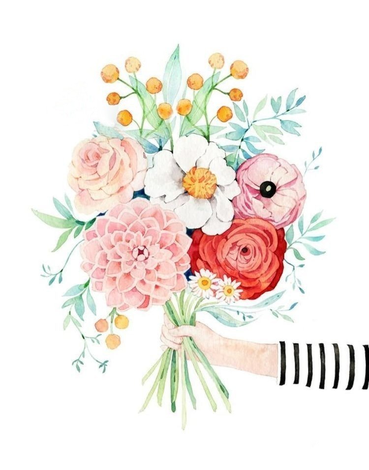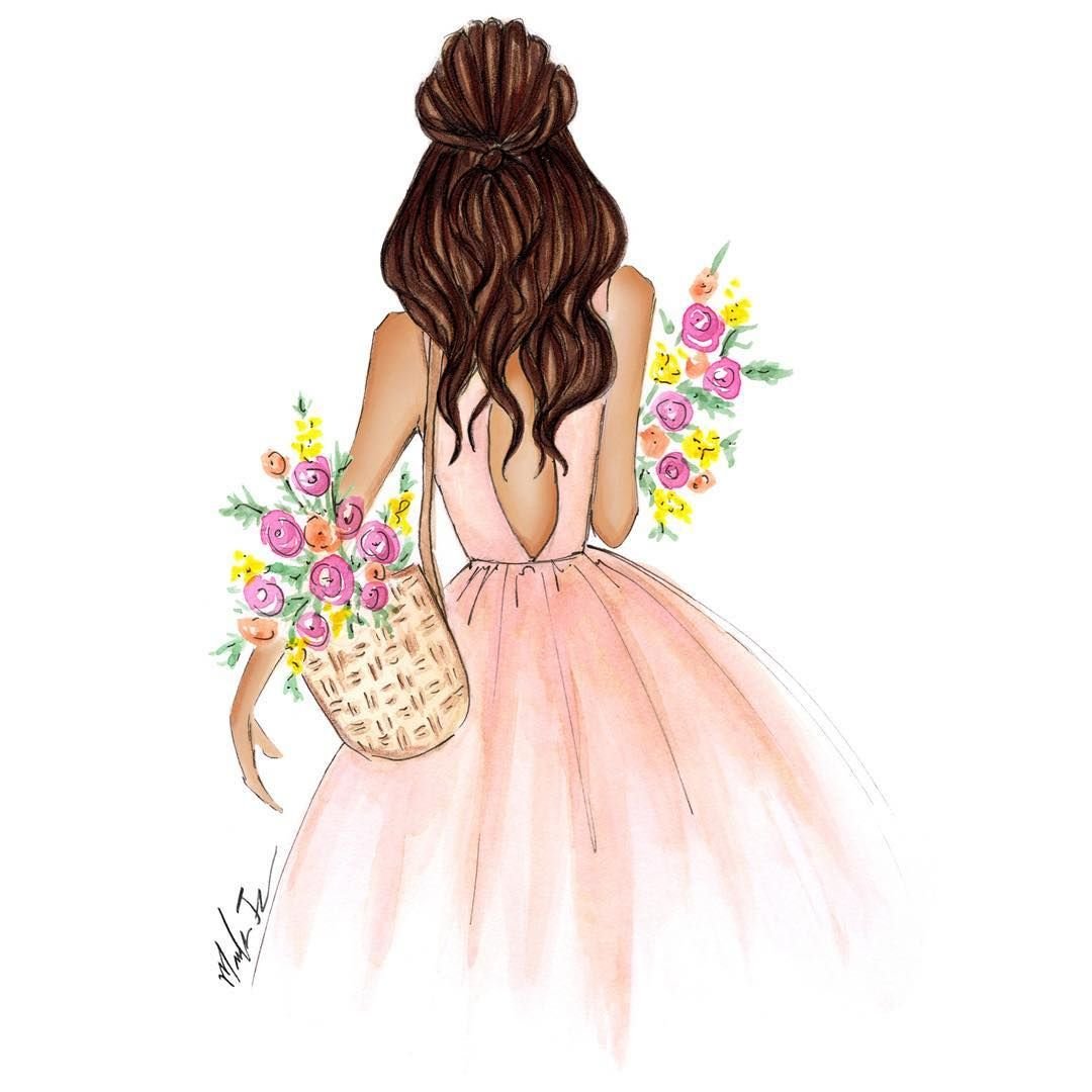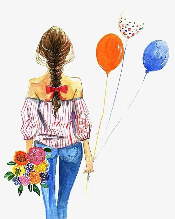 ![Нарисованная девушка с букетом]()