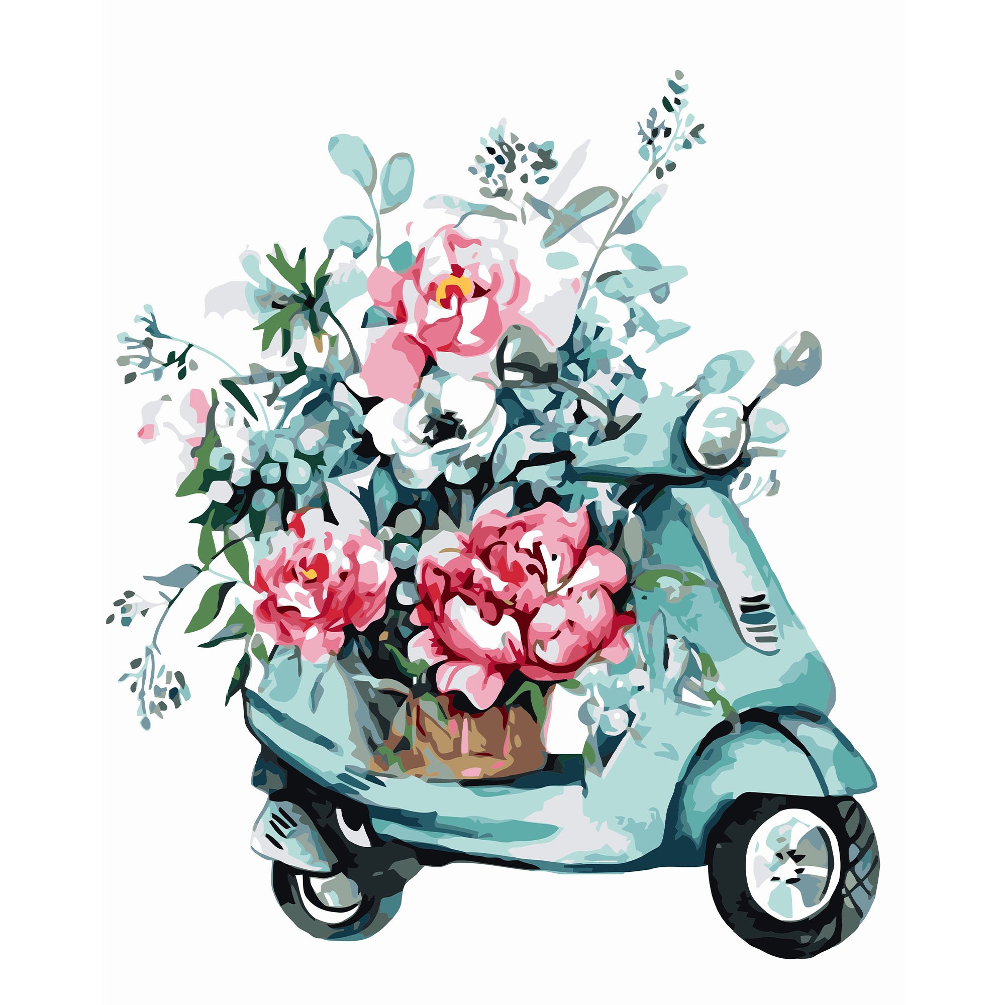 ![Машинка с цветами акварель]()