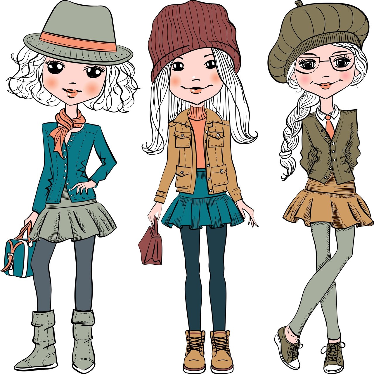 ![Модные девочки мультяшные]()