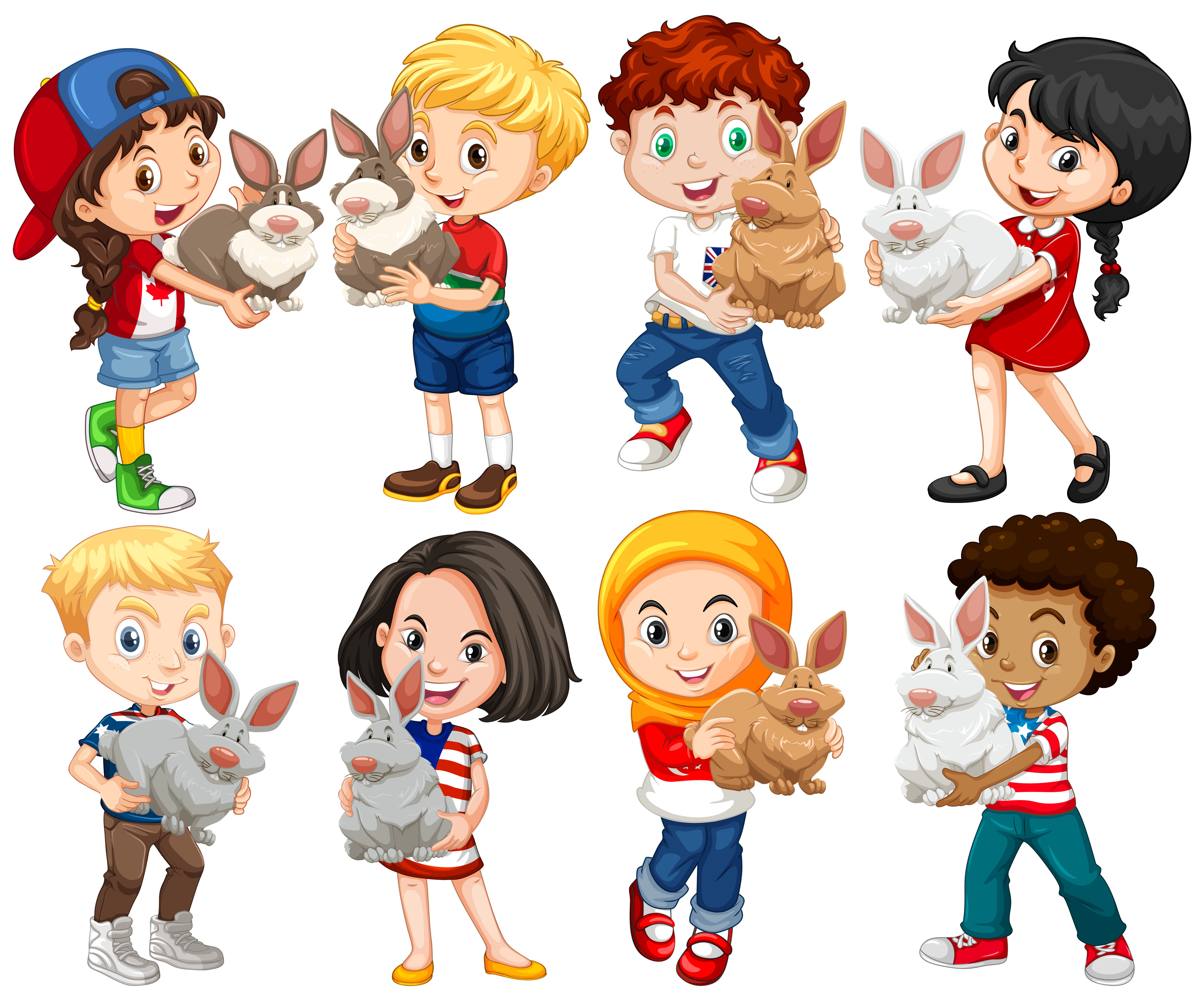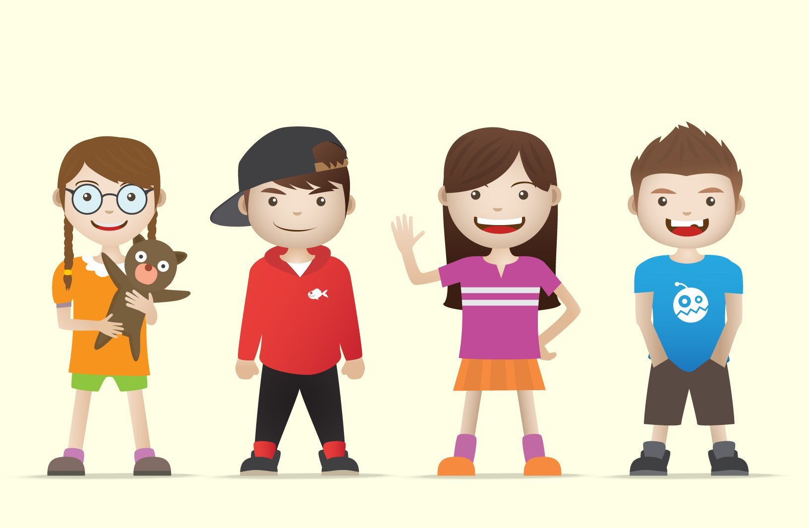 ![Мультяшные дети в разной одежде]()