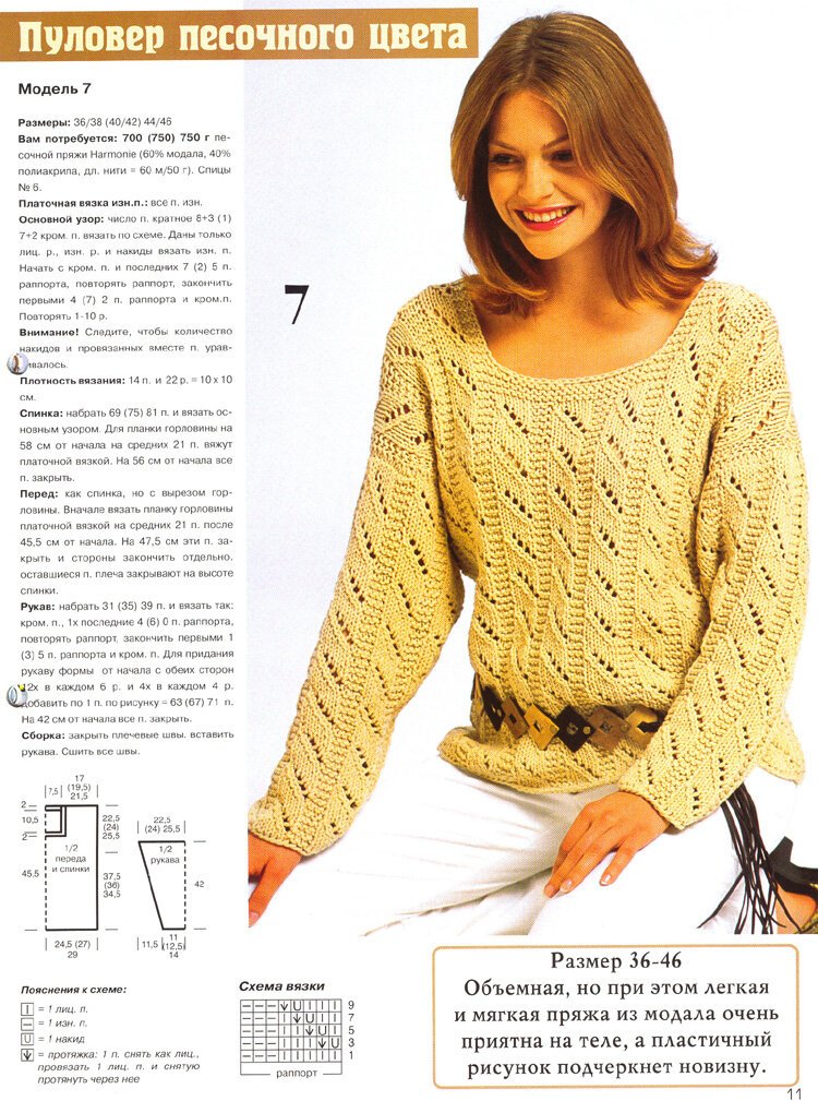 ![Вязаные пуловеры спицами со схемами модные]()