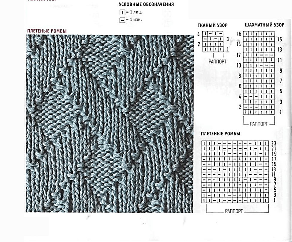 Схемы вязания спицами из лицевых и изнаночных петель