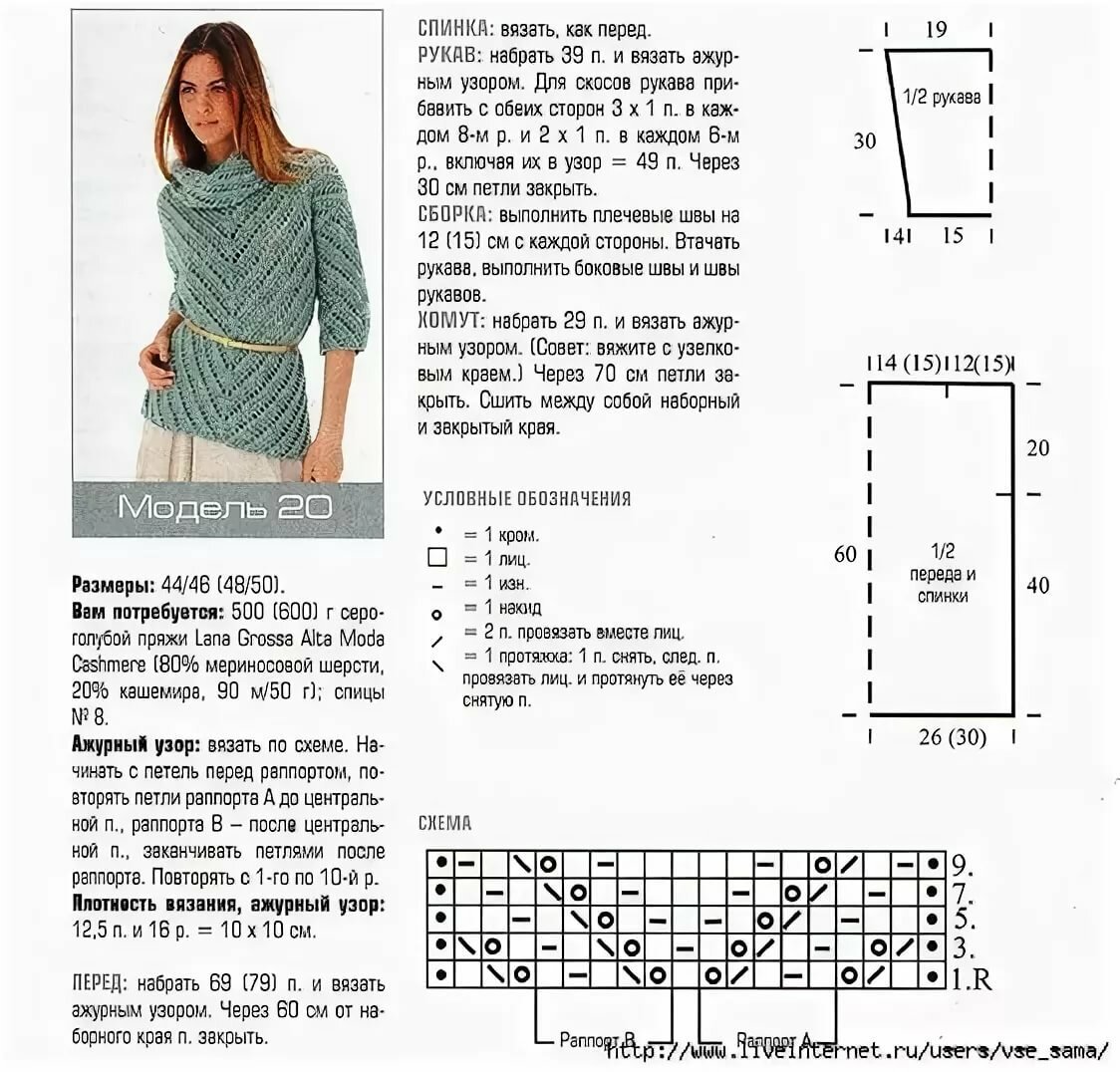 Ажурные пуловеры спицами со схемами простые и красивые