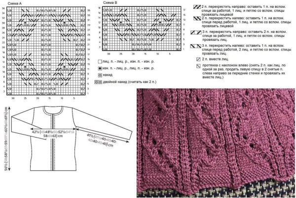 ![Узоры для вязания спицами со схемами для женских кофточек]()