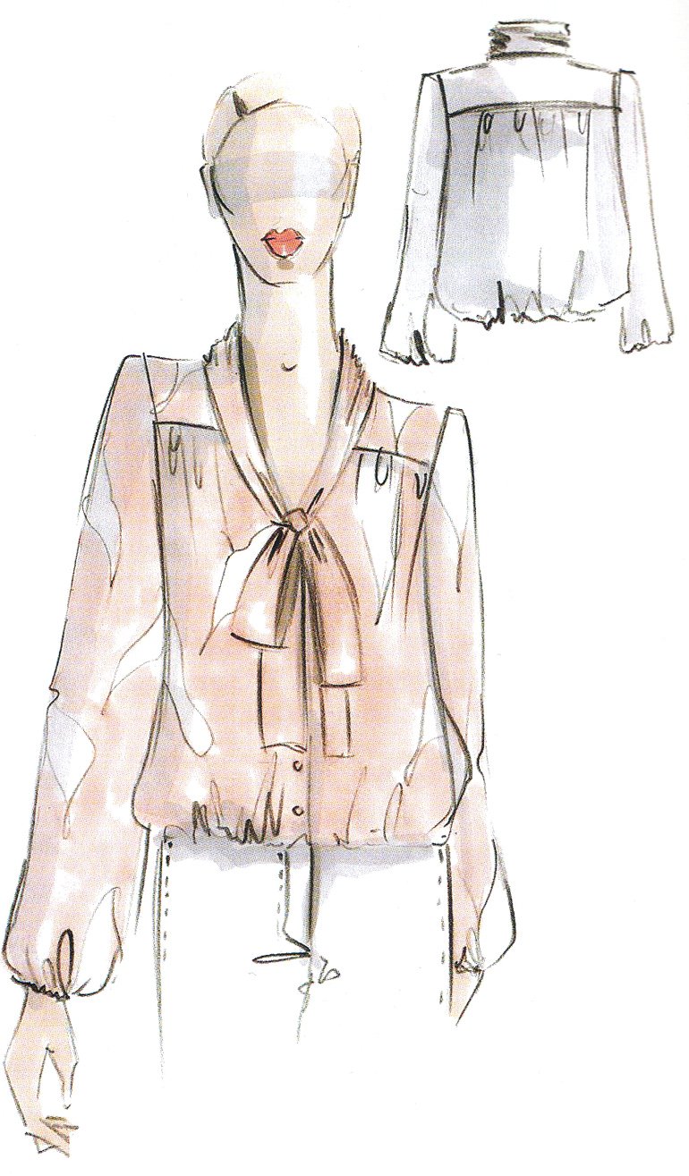 ![Эскиз блузки с бантом]()