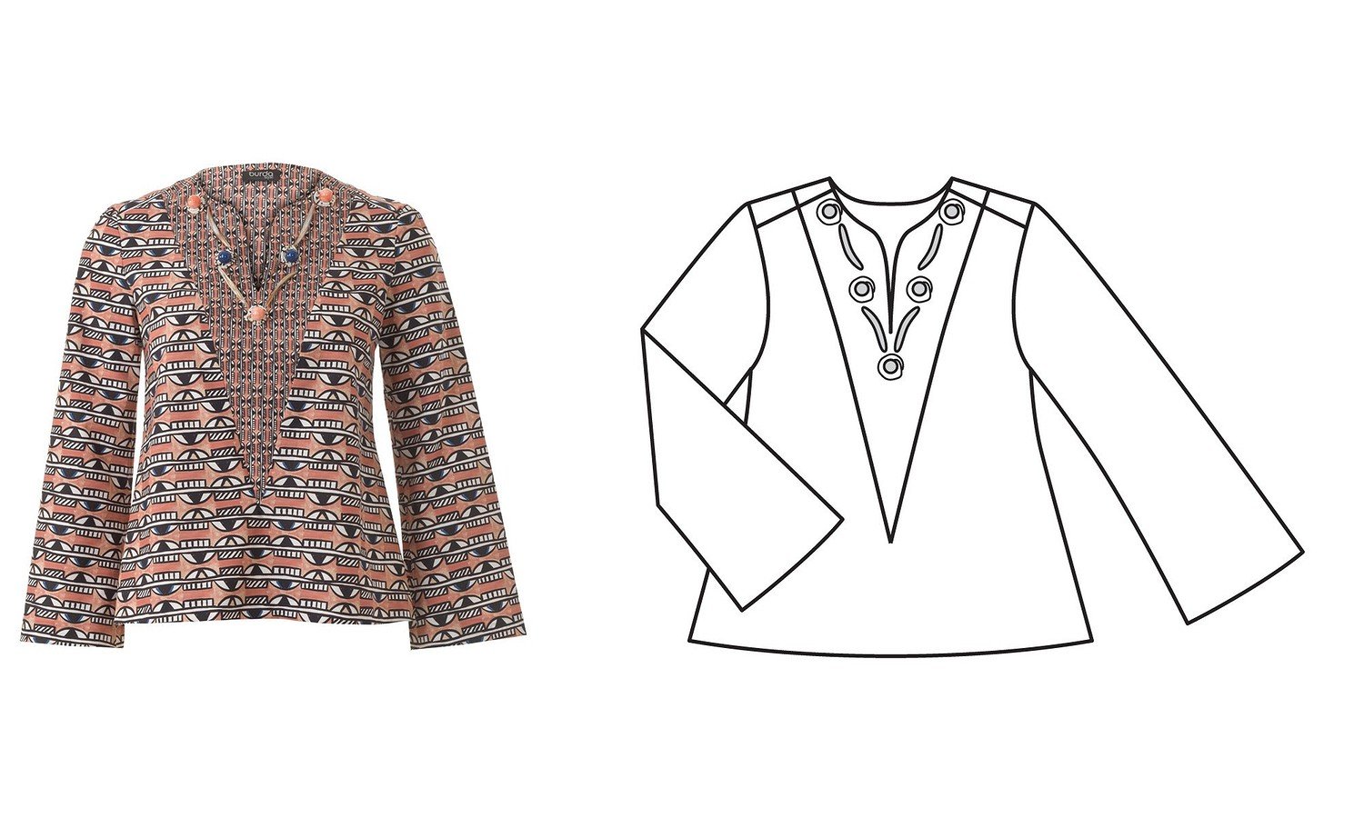 ![Технический эскиз блузки]()