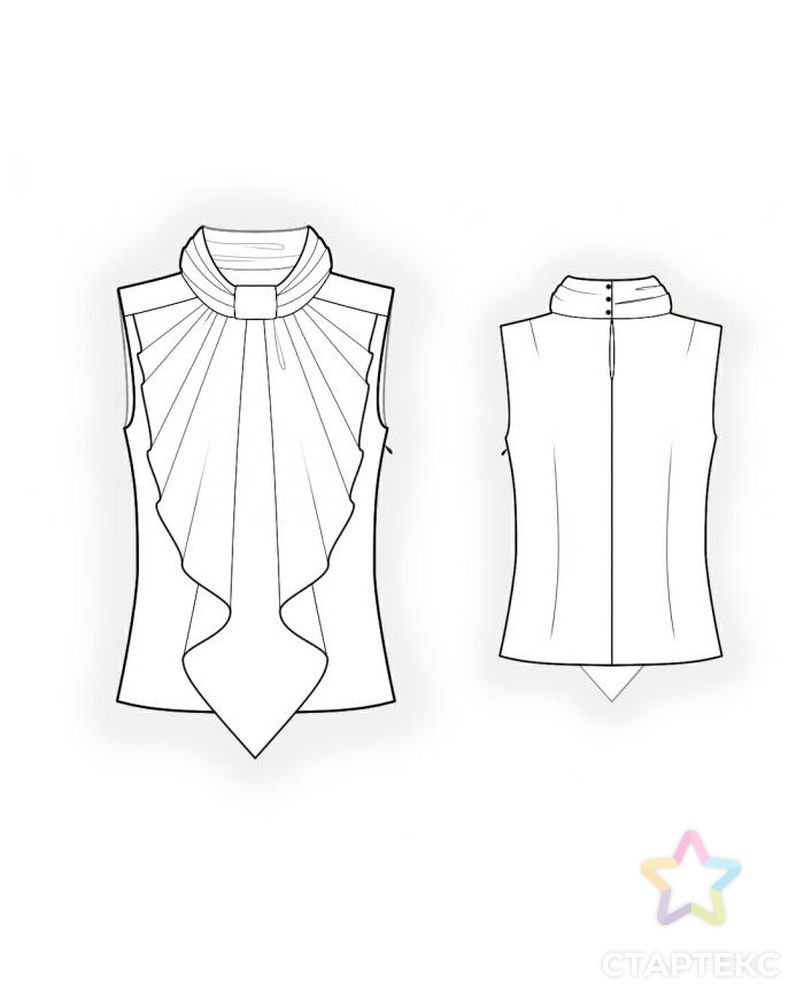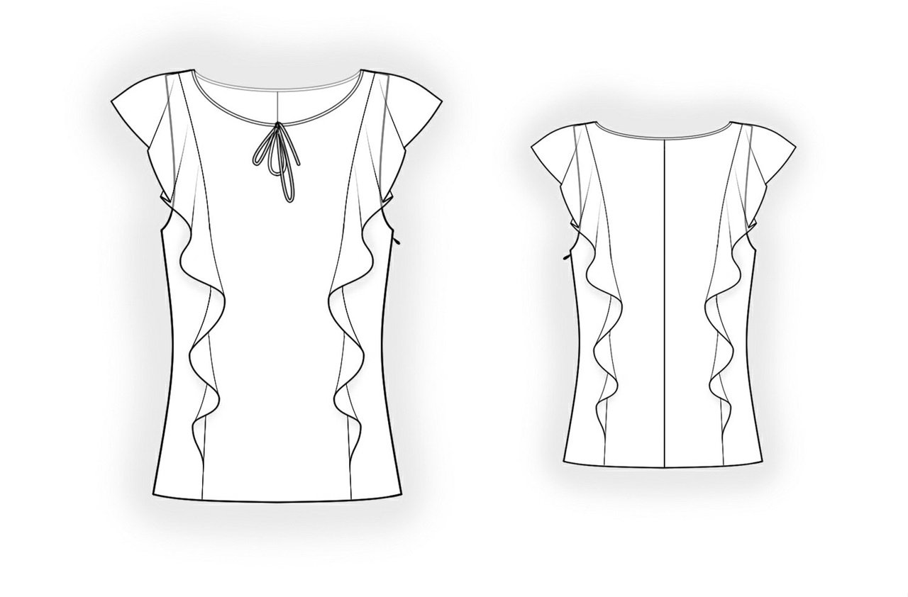 ![Технический рисунок блузка с рюшами]()