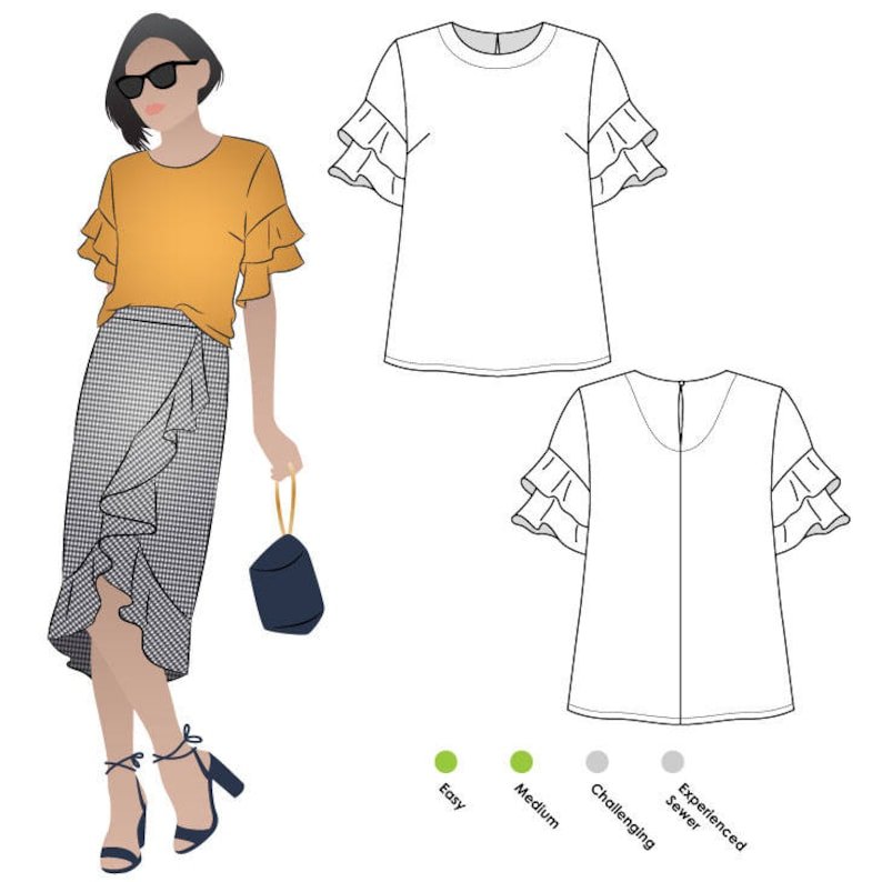 ![Эскиз блузки с коротким рукавом]()