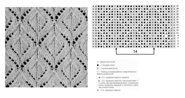 ![Вязание ажурных ромбов спицами схемы с описанием]()