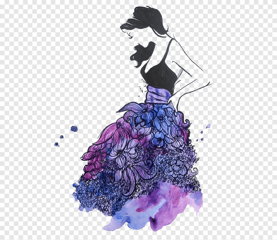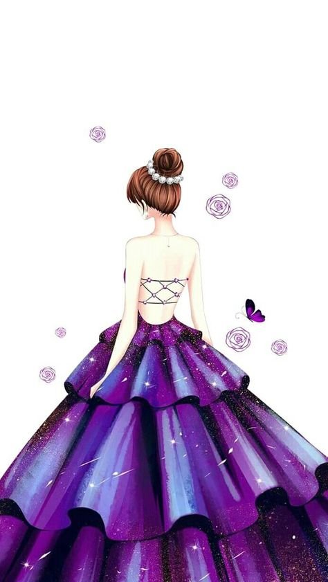![Девушка в платье рисунок]()