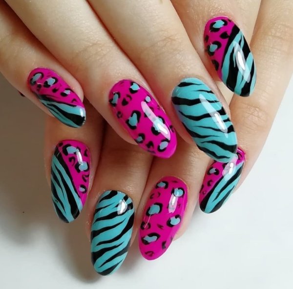 Пятнистые яркие маникюры