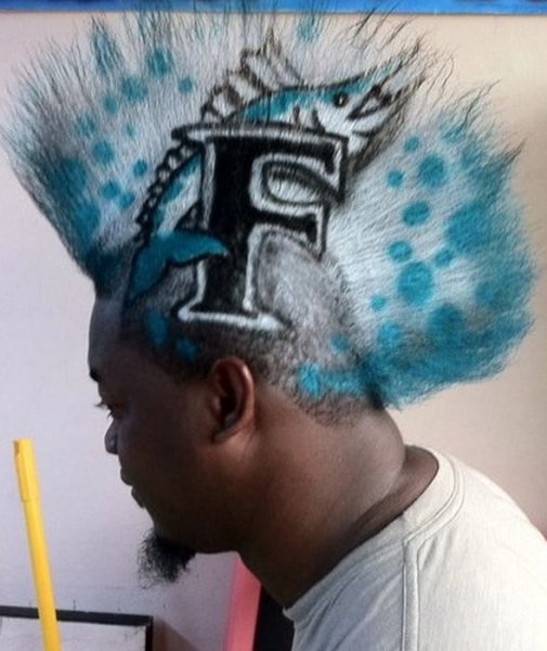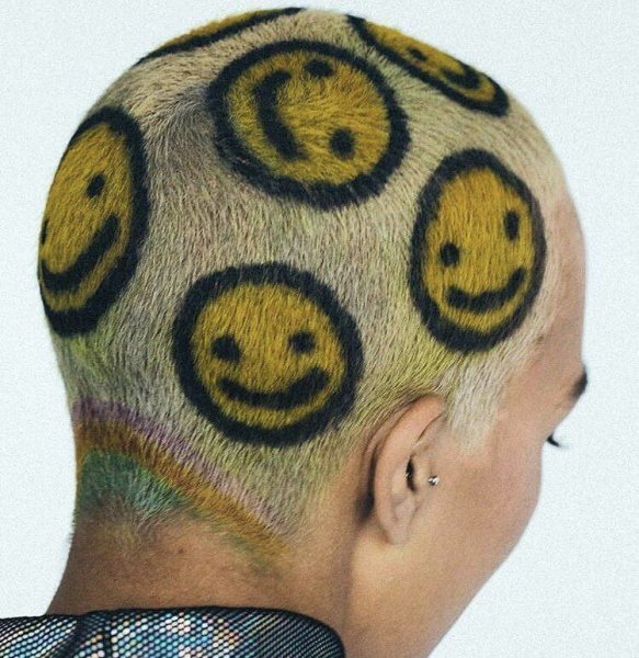 ![Узоры краской на выбритой голове]()