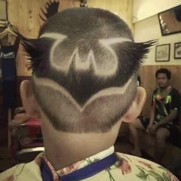 ![Выстриги для мальчиков на голове Бэтмен]()