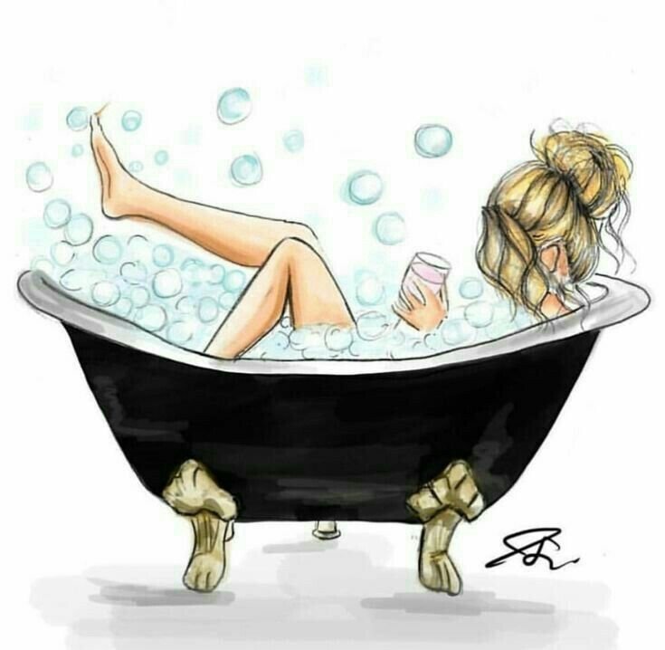 ![Девушка в ванной рисунок]()