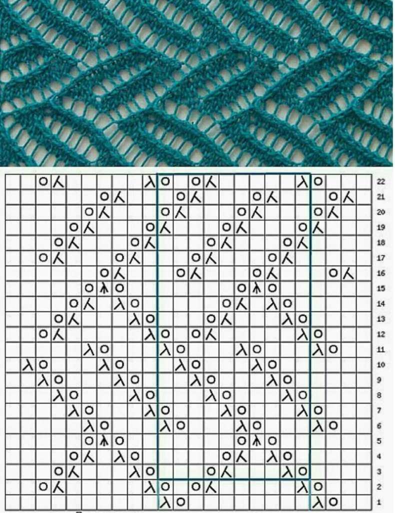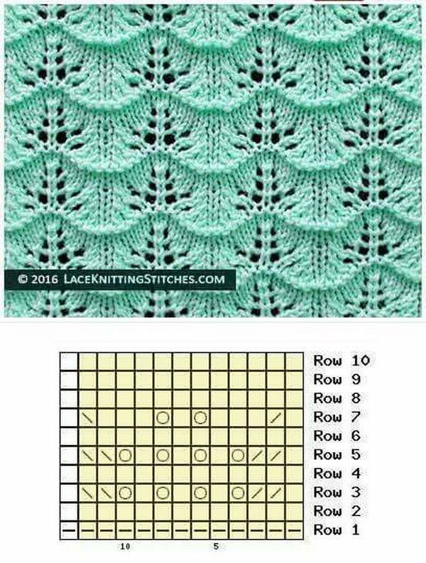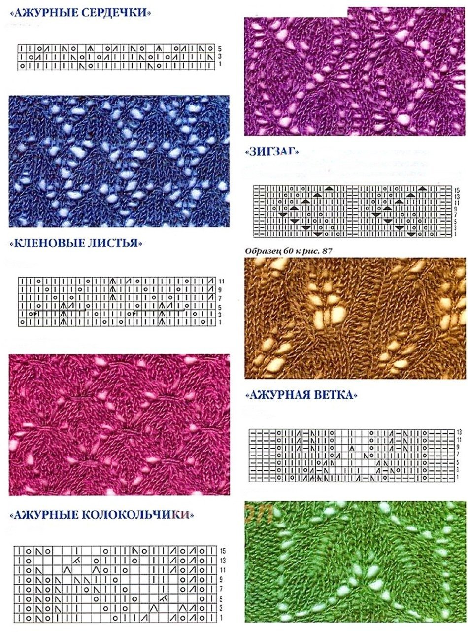 Простые ажурные узоры для вязания спицами с описанием и схемами