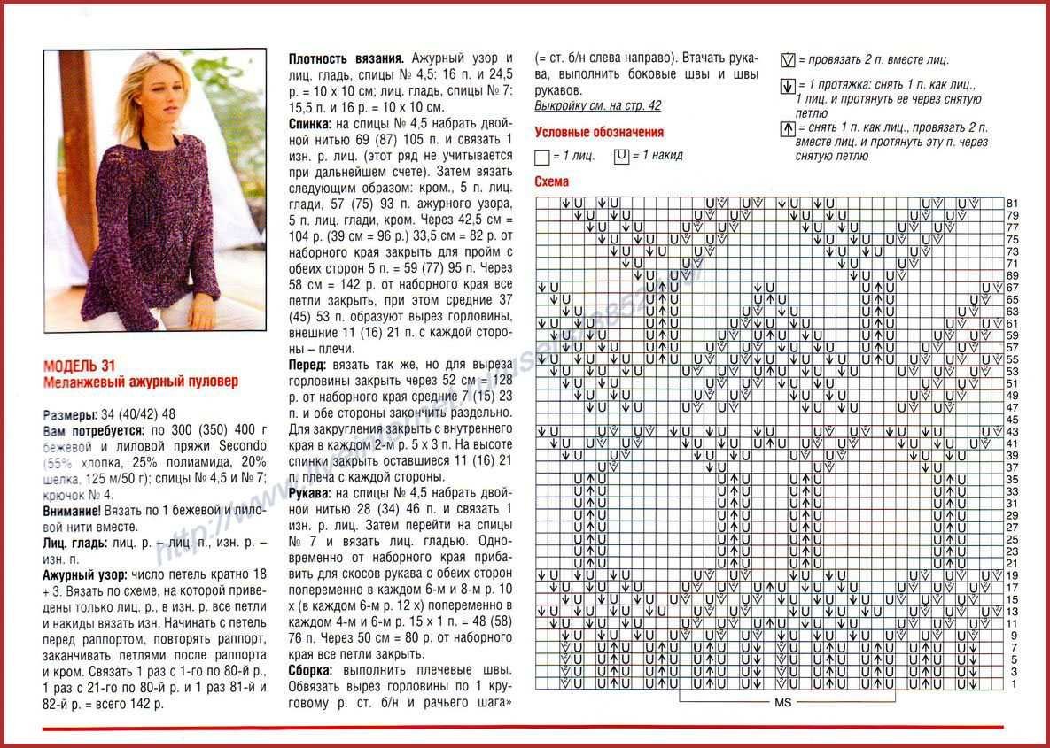 ![Вяжем ажурный джемпер спицами для женщин схемы]()