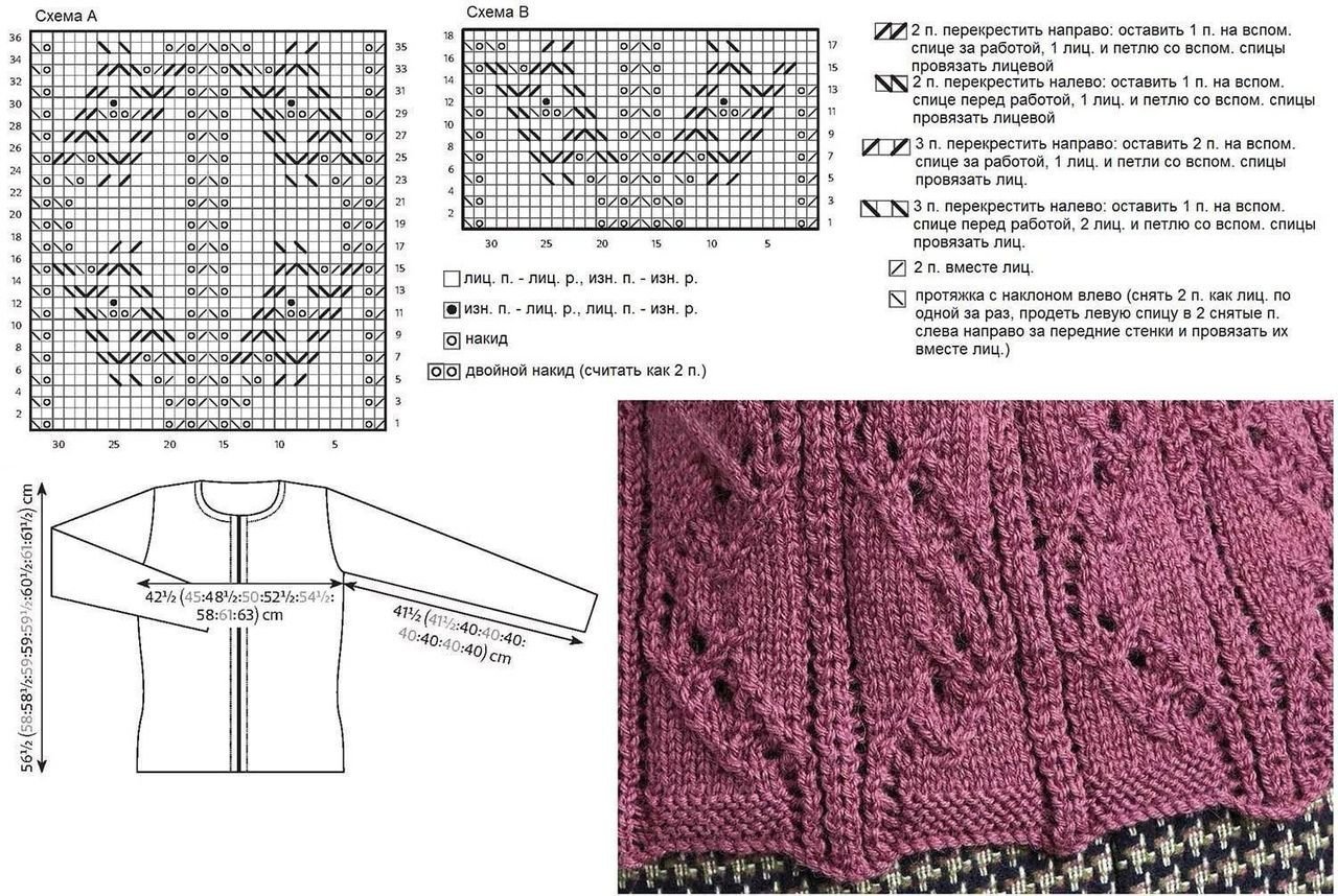 ![Узоры спицами со схемами простые и красивые для кардигана]()