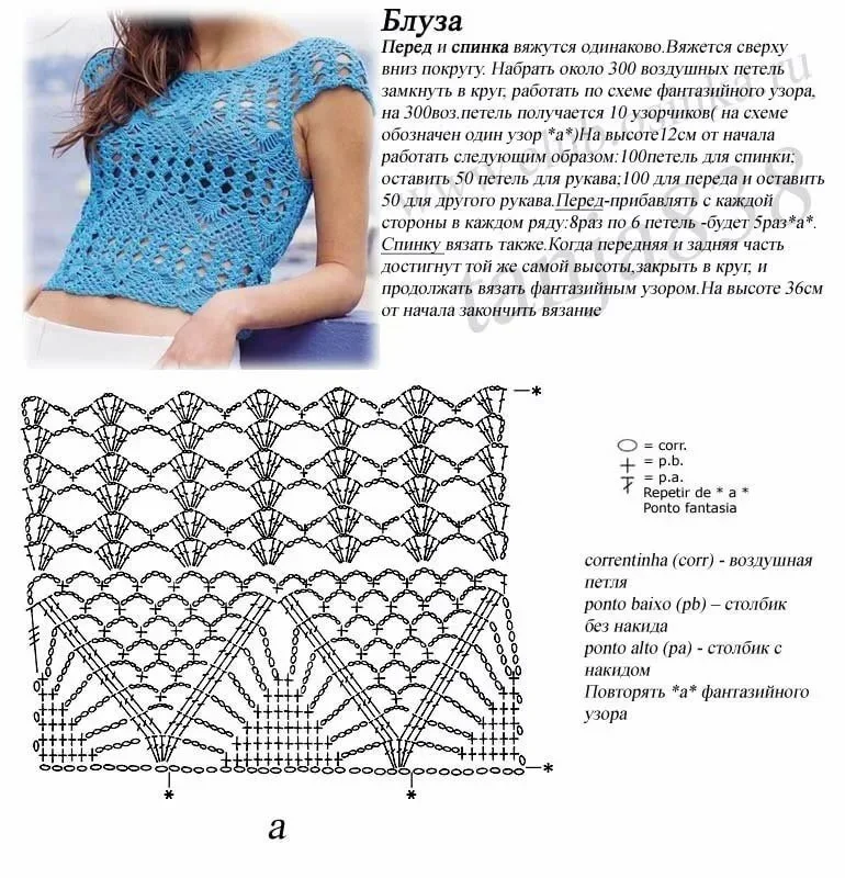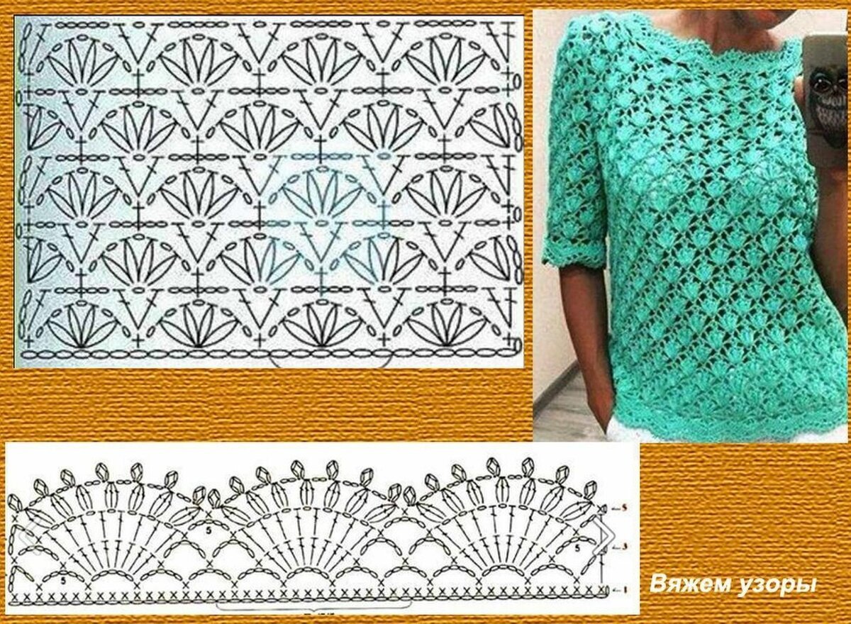 ![Вязание крючком схемы и описание летних кофточек для женщин]()