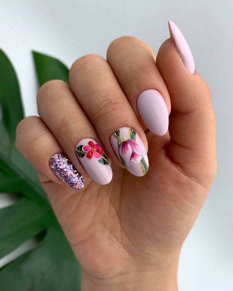 ![Ногти миндаль с рисунком]()