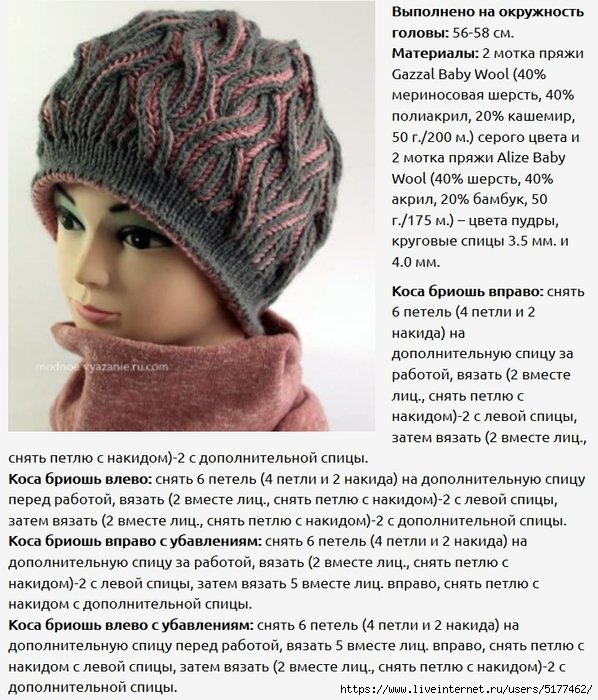 Шапочка спиралька спицами с описанием и схемами