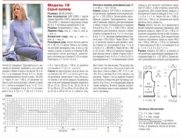 ![Пуловер спицами описание]()