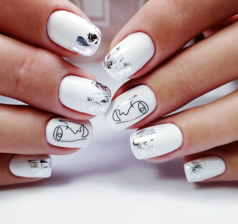 Белый маникюр с графикой