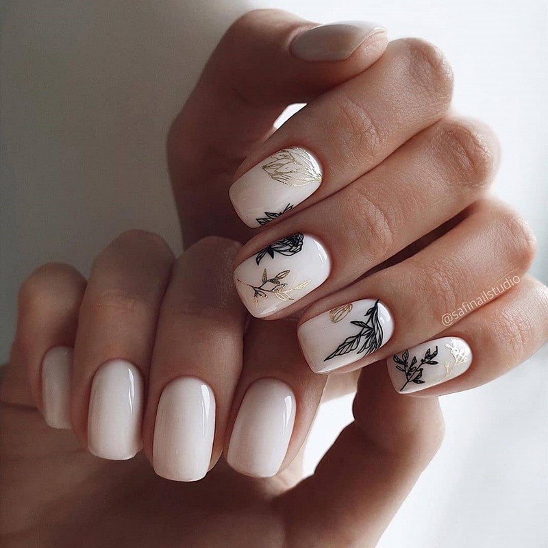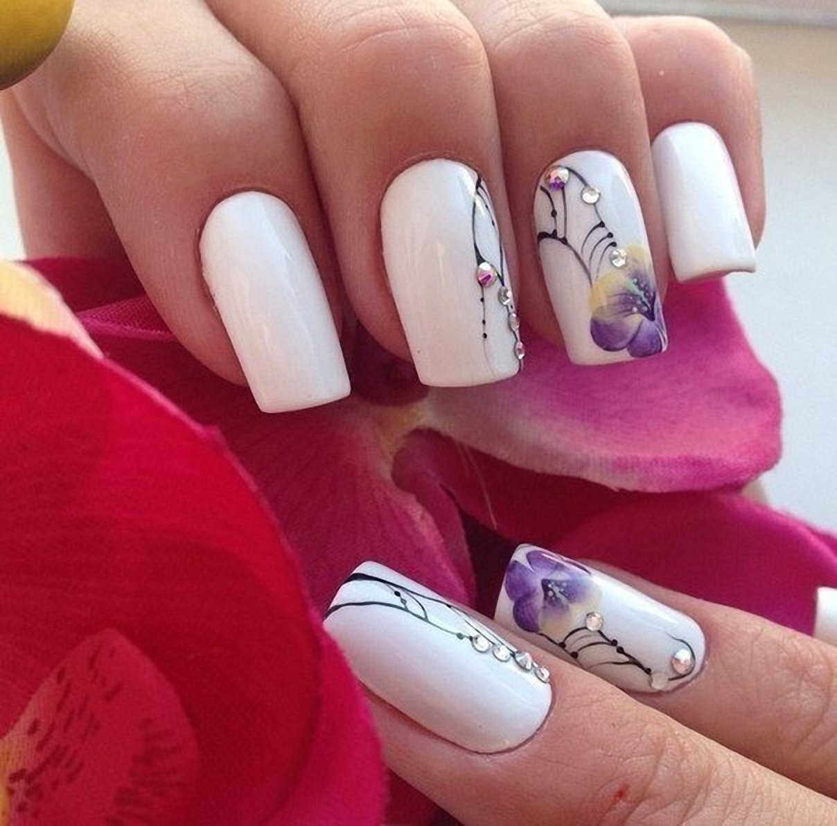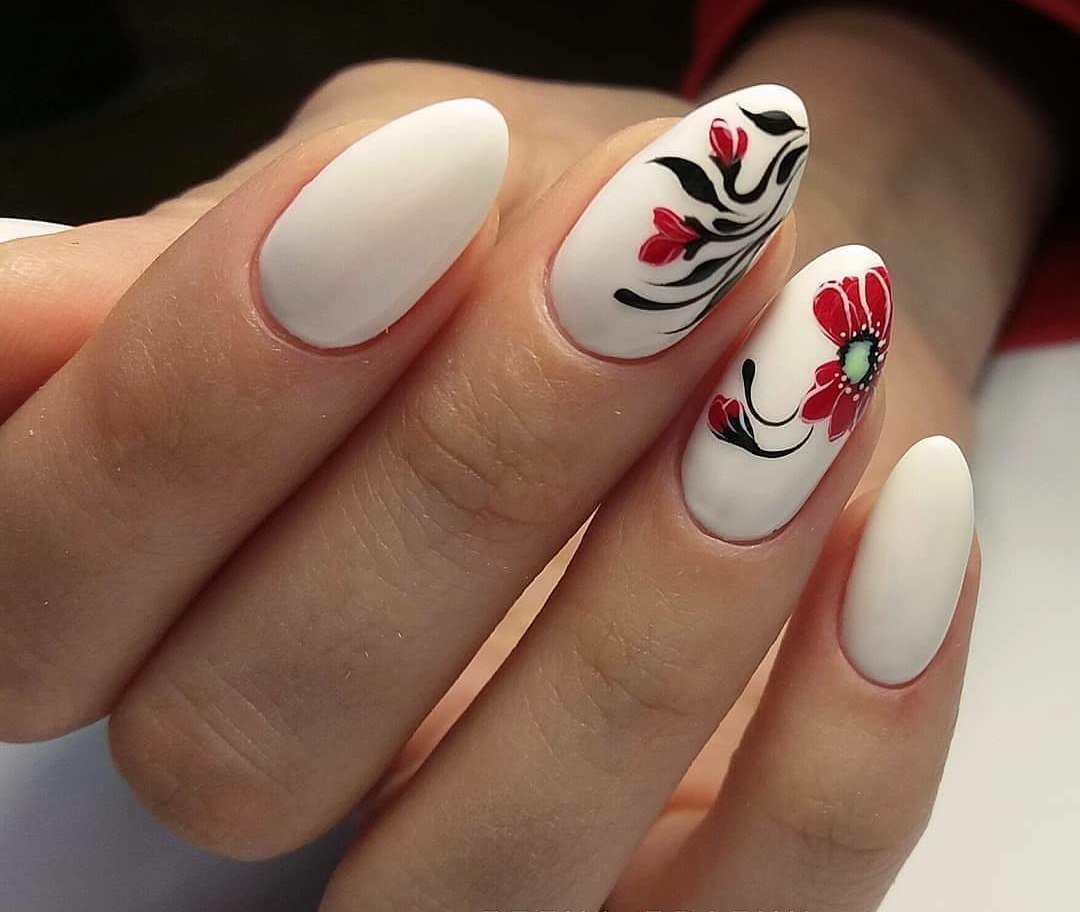 Белый маникюр с цветами
