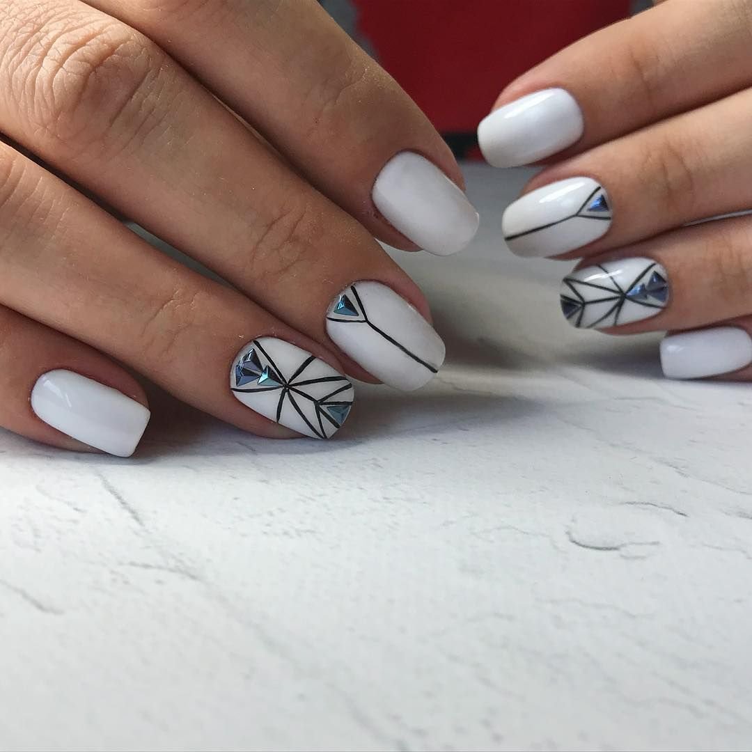 ![Белый маникюр с геометрией]()