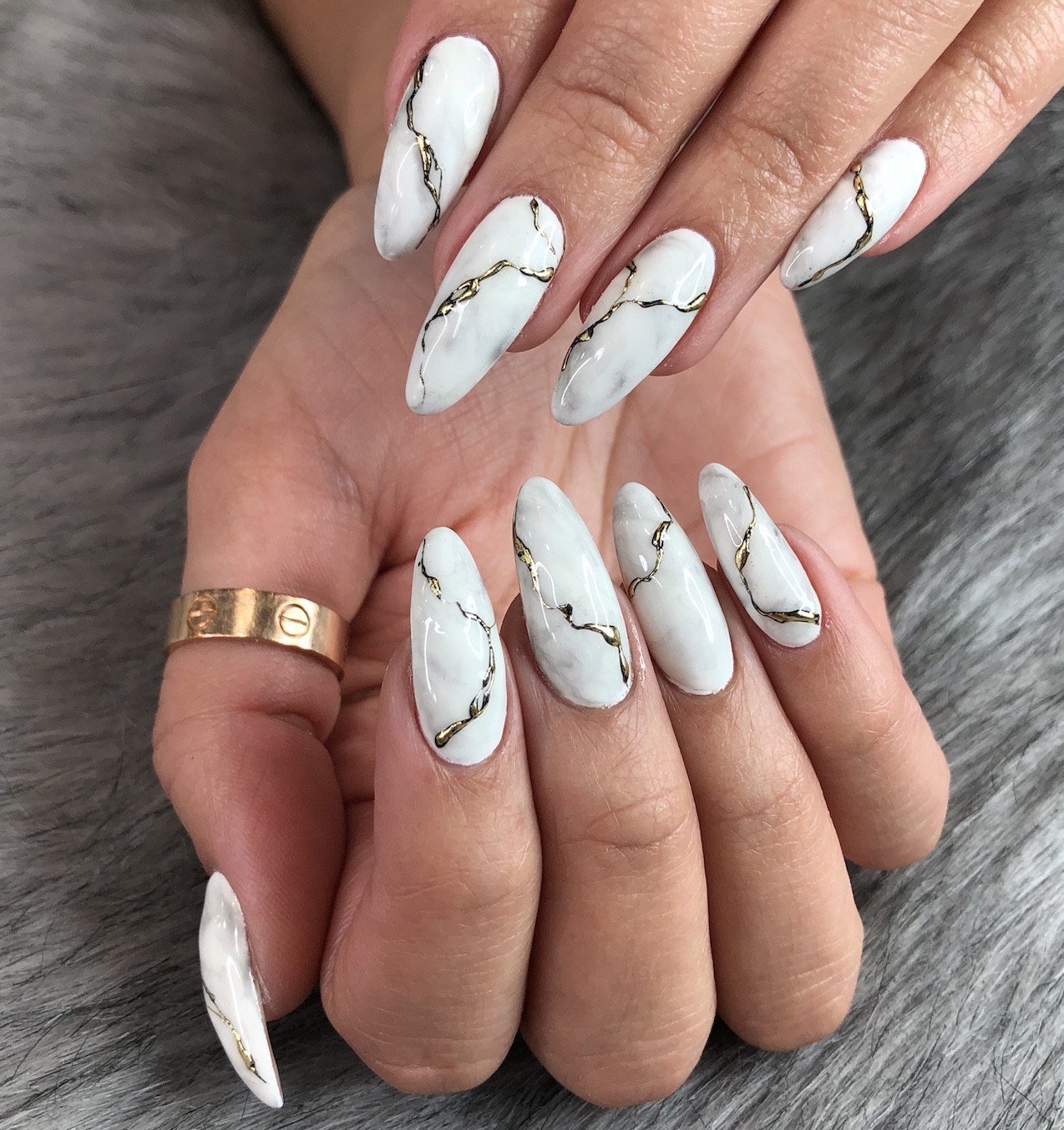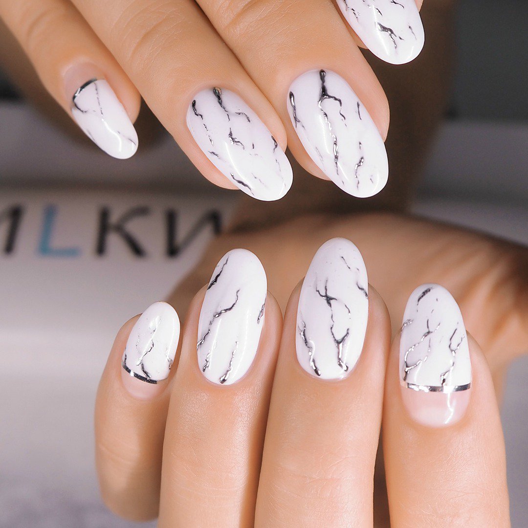 Маникюр 2022 миндаль мрамор