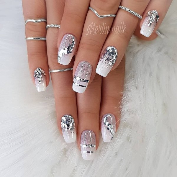 Маникюр гламурный белый дизайн