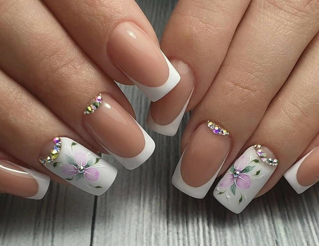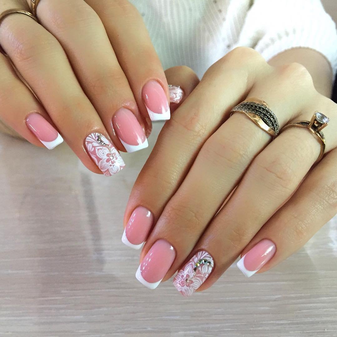 Нежный френч на ногтях с рисунком