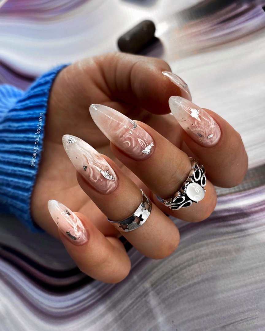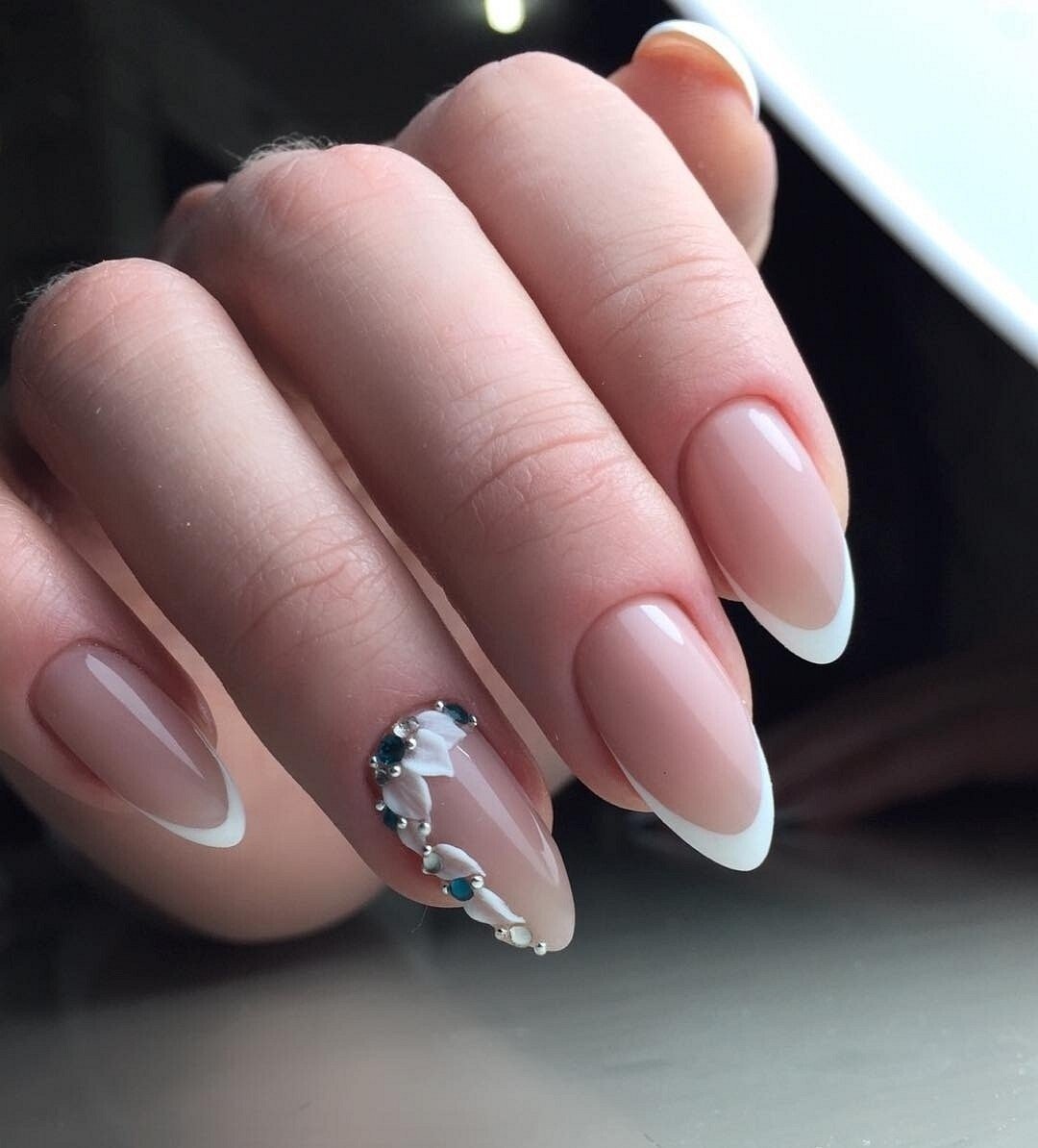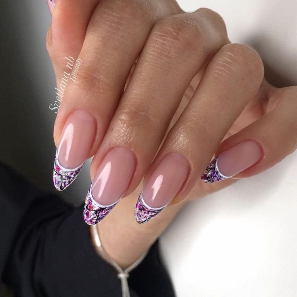 Френч на миндалевидных ногтях 2022