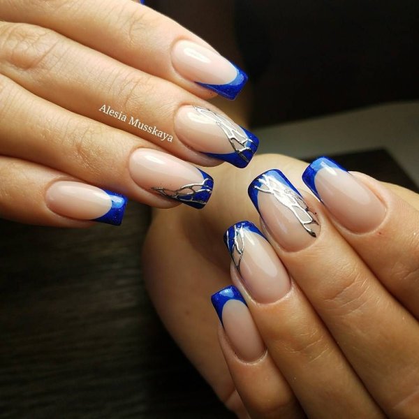 ![Маникюр синий френч]()