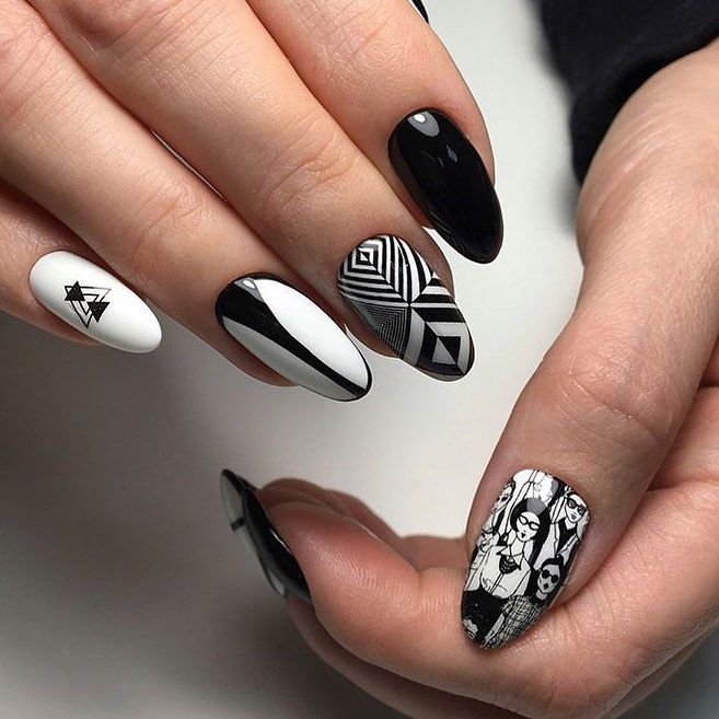 ![Ногти черно белые]()