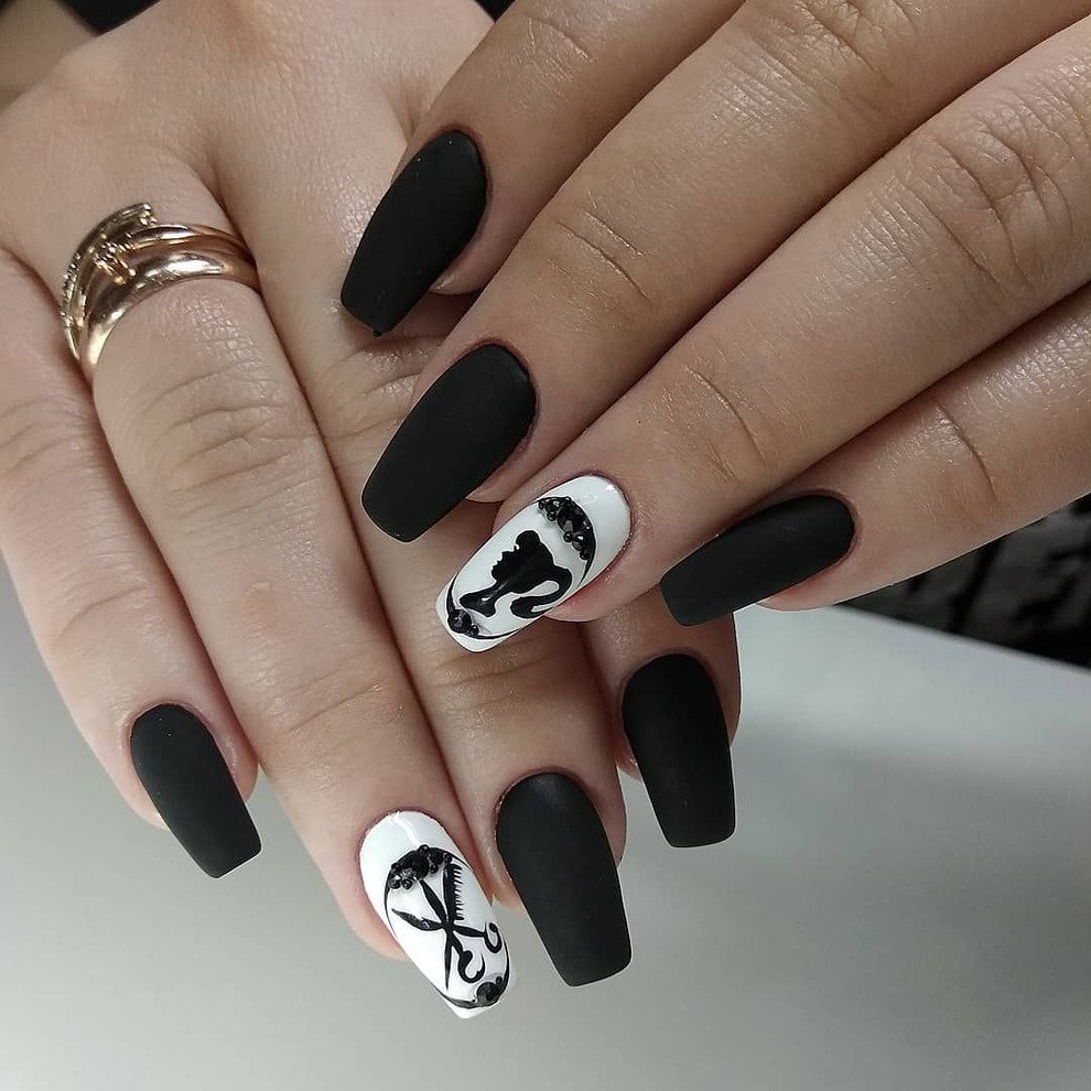 Черные ногти с рисунком
