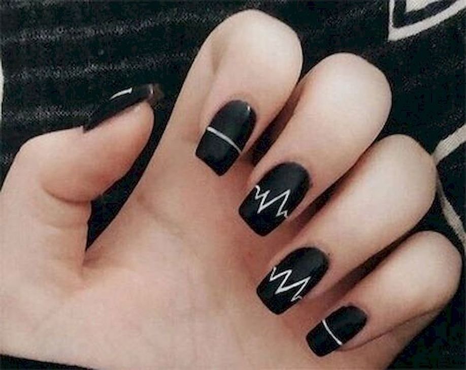 ![Ногти чёрные с белым молодежные]()