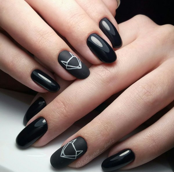 Маникюр с черным матовым гель лаком