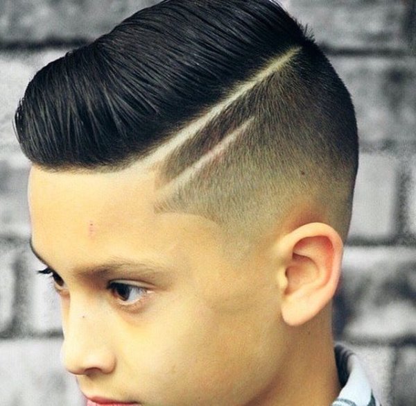 ![Прическа для мальчика с полосой]()