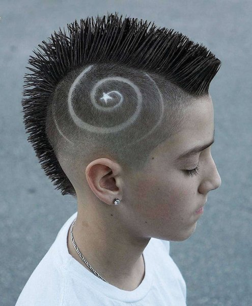 ![Прическа для мальчика модная выбритыми]()