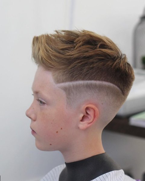 ![Прическа для мальчика с выбритыми висками]()