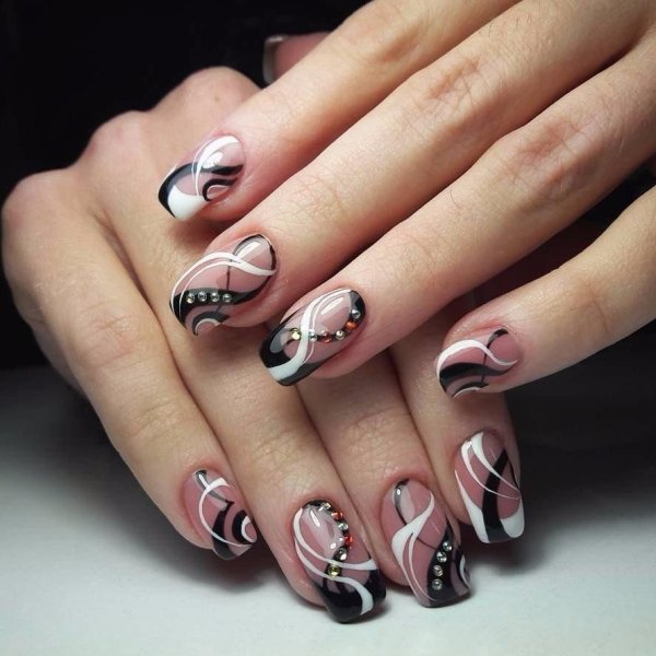 ![Маникюр розовый с черным]()