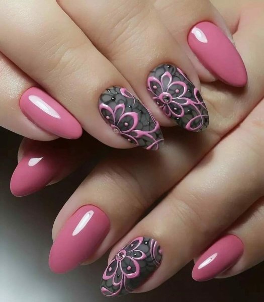 Черно-розовый маникюр