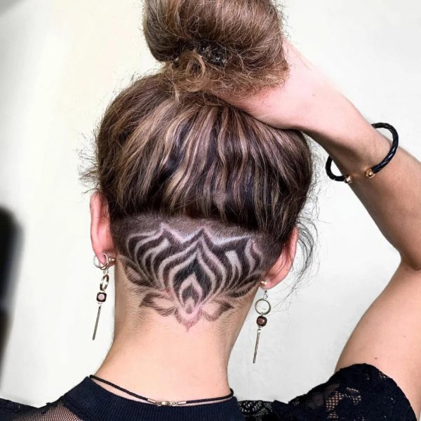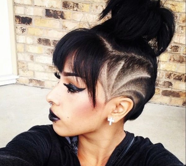 ![Креативные женские стрижки на короткие волосы с выбритыми]()