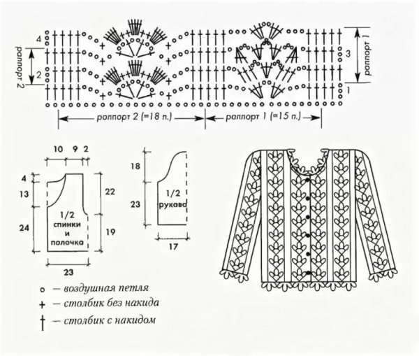 ![Вязание ажурных кофточек крючком со схемами и описанием]()