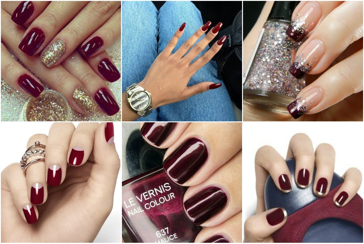 ![Вишнёвый бордовый маникюр на короткие ногти 2023]()