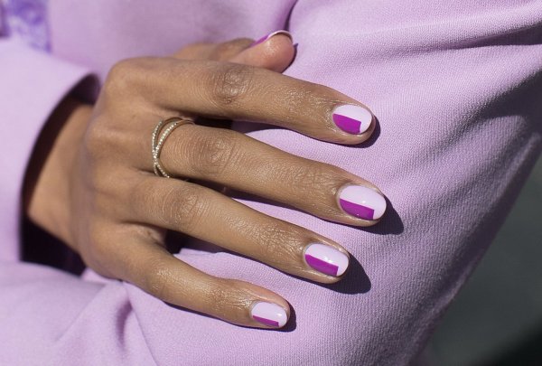 ![Маникюр в пастельных тонах с геометрическим рисунком]()